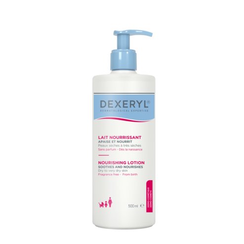 DEXERYL Loción Nutritiva, especialmente diseñada para pieles secas, combina una textura fluida con los beneficios altamente nutritivos e hidratantes de un bálsamo. Alivia inmediatamente la tirantez y el picor y nutre la piel en profundidad durante 24 horas.