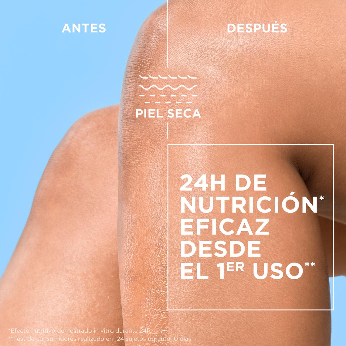 Descubre una hidratación que nutre tu piel durante 24 horas¹, con beneficios desde la primera aplicación y una textura ligera que se funde al instante, proporcionando alivio y confort.