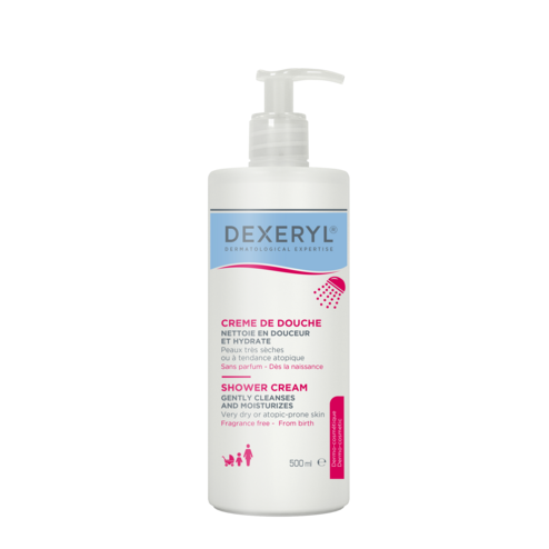 Dexeryl Shower Crema de ducha limpia, hidrata y protege todo tipo de pieles muy secas y con tendencia atópica. Como complemento a la crema emoliente, su sencilla fórmula, que no contiene jabón ni perfume, es fácil de aplicar y de aclarar. Los estudios han demostrado que proporciona un bienestar duradero. El 98 % de los usuarios afirma que su piel está calmada desde el primer uso*, el picor se reduce en un 83 %**y la piel está un 81 % más hidratada después de la primera aplicación***.